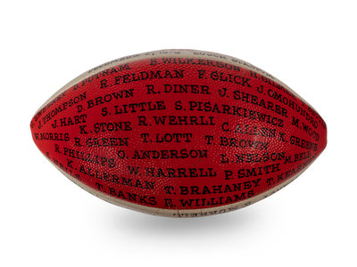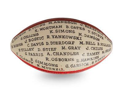 gifted to the College Football Hall of Famer the week he was fired from a two-year professional stint with the Cardinals for refusing owner William Bidwill's suggestion to start backup quarterback Steve Pisarkiewicz in place of veteran leader Jim Hart against the 49ers. The Cardinals would go on that Sunday to edge the 49ers 13-10 and presented this game ball to Wilkinson after the victory as a touching gesture of the their admiration for the coaching legend.