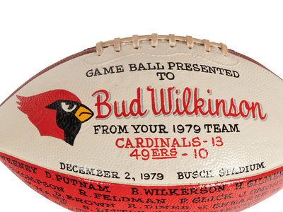 A December 2, 1979 St. Louis Cardinals vs. San Francisco 49ers Game Ball Presented to Coach Bud Wilkinson,