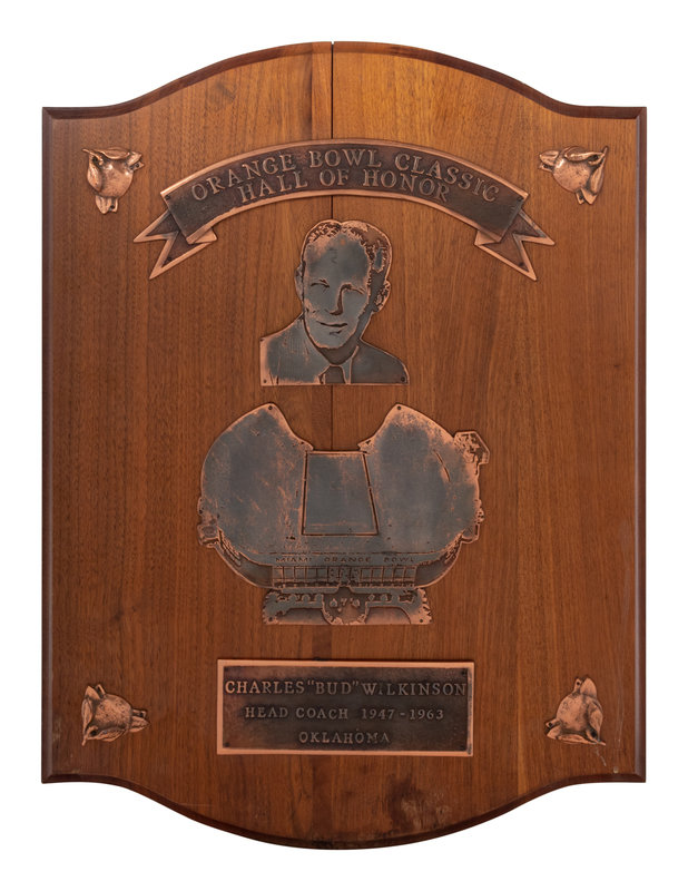 Among his many legendary achievements, Bud Wilkinson led the Oklahoma Sooners to five trips to the Orange Bowl, winning four times. In 1978, Wilkinson was recognized with a place in the Orange Bowl Hall of Honor. Wilkinson received this ceremonial award and it remained with him for the rest of his life.