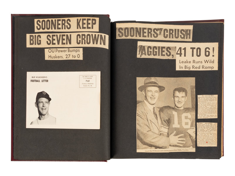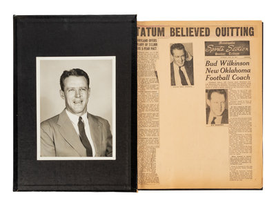 comprising three in total containing assorted issued of "Bud Wilkinson Football Letter," newspaper clippings, and photos chronicling Wilkinson's coach days at Syracuse to his historic rise at Oklahoma.