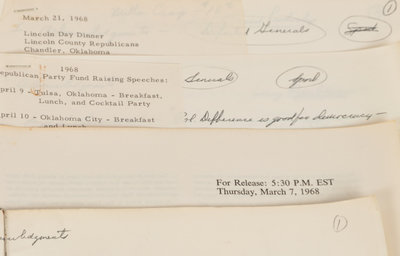 A Group of Sports and Political Speeches From the Collection of of Hall of Fame Oklahoma Football Coach Bud Wilkinson