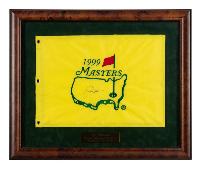 A Jack Nicklaus 1999 Masters Signed Autograph Golf Flag Display,