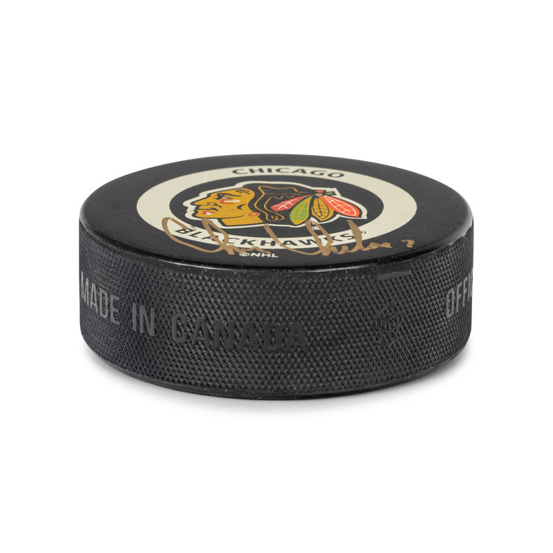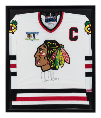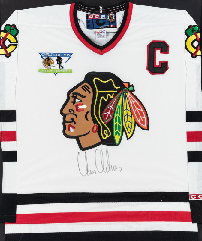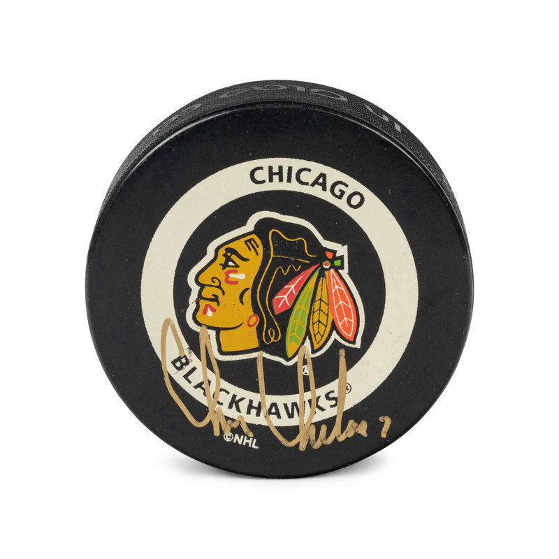 A Chris Chelios Personally Gifted Signed Autograph Chicago Blackhawks Jersey and Hockey Puck,