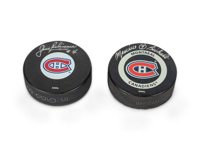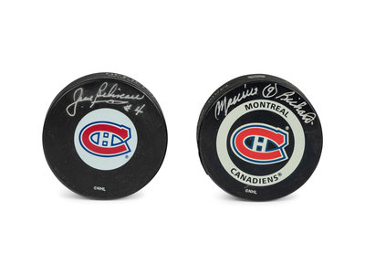 A Group of Maurice Richard and Jean Béliveau Montreal Canadiens Signed Autograph Hockey Pucks (Beckett Authentication Services BAS Certified)