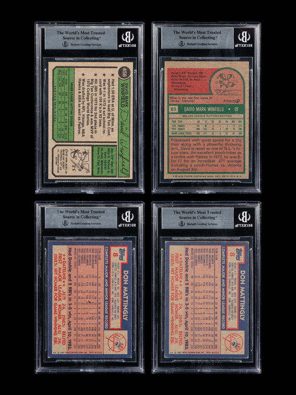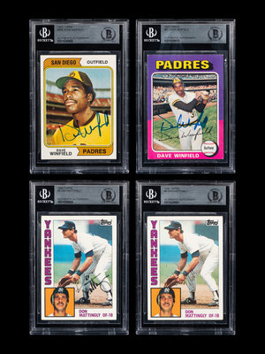 A Group of Four Dave Winfield and Don Mattingly Signed Baseball Cards Including Autographed Rookies of Both