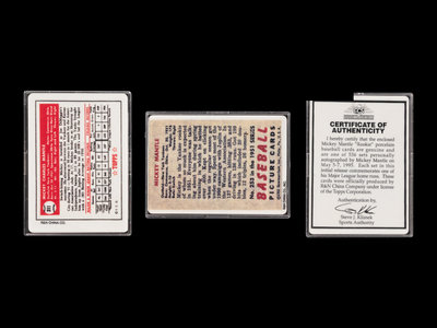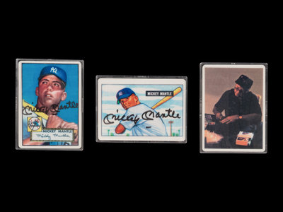 comprising porcelain issues of 1951 Bowman (inscribed "Mickey Mantle" in black Sharpie) and 1952 Topps (inscribed "Mickey Mantle" in black Sharpie).