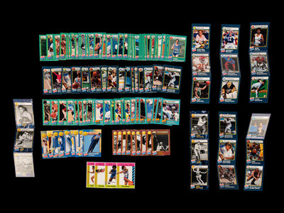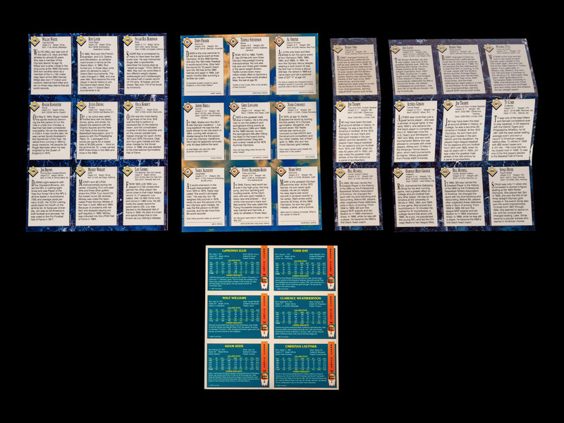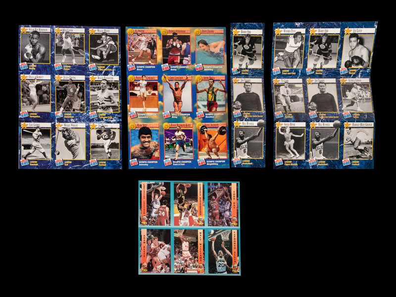 including 1993 Shaquille O'Neal uncut panel, 1990 Ken Griffey Jr., Babe Ruth, Barry Sanders.