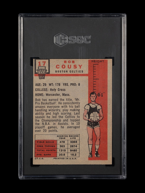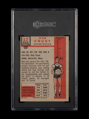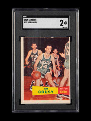 A 1957 Topps Bob Cousy Rookie Basketball Card No. 17 (SGC 2 GOOD)