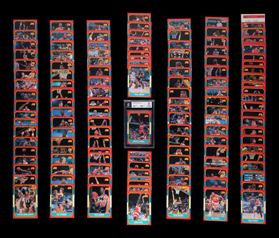 A Complete Set of 1986 Fleer Basketball Cards Including a BGS 5 EX Michael Jordan No. 57 (132/132)