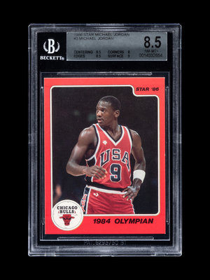 A 1986 Star Michael Jordan Set Break Basketball Card No. 3 1984 Olympian (BGS 8.5 NM-MT+, 9.5 Subgrade)