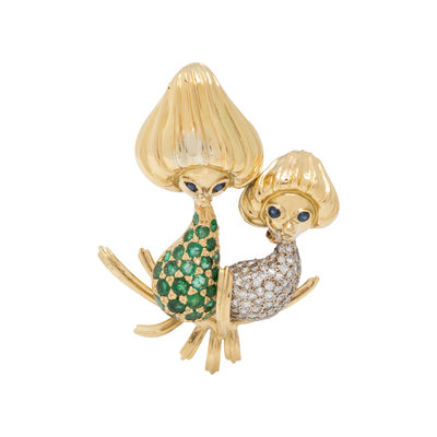 YELLOW GOLD, DIAMOND AND GEMSTONE MUSHROOM BROOCH