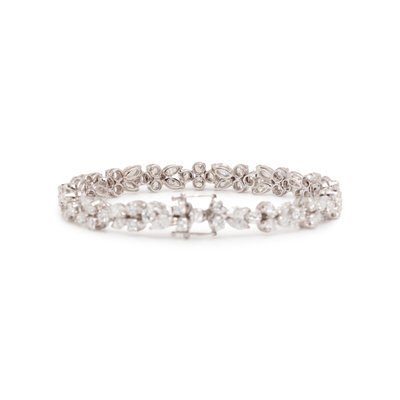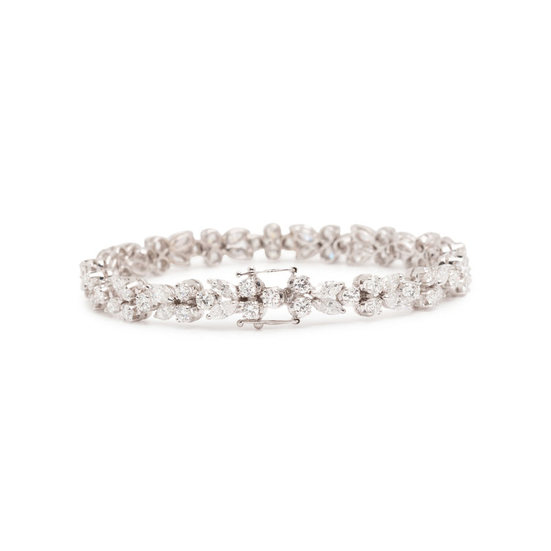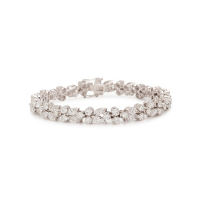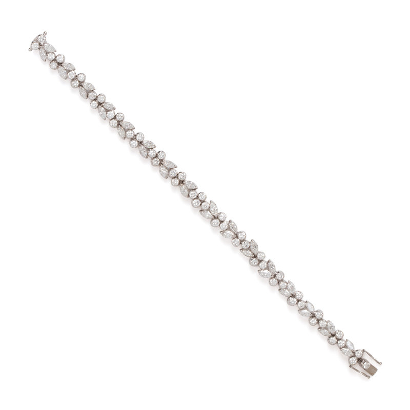 Containing 32 marquise and 51 round brilliant cut diamonds weighing approximately 10.15 carats total. Mounted in white gold. 7 1/4 inches long.