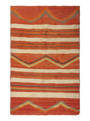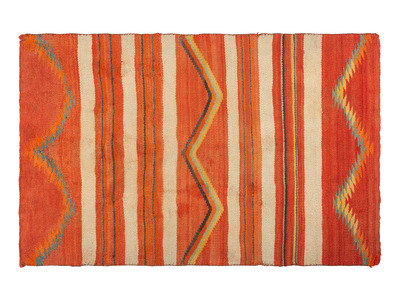 hand-spun wool in colors of aniline red, orange, green, yellow, and cream