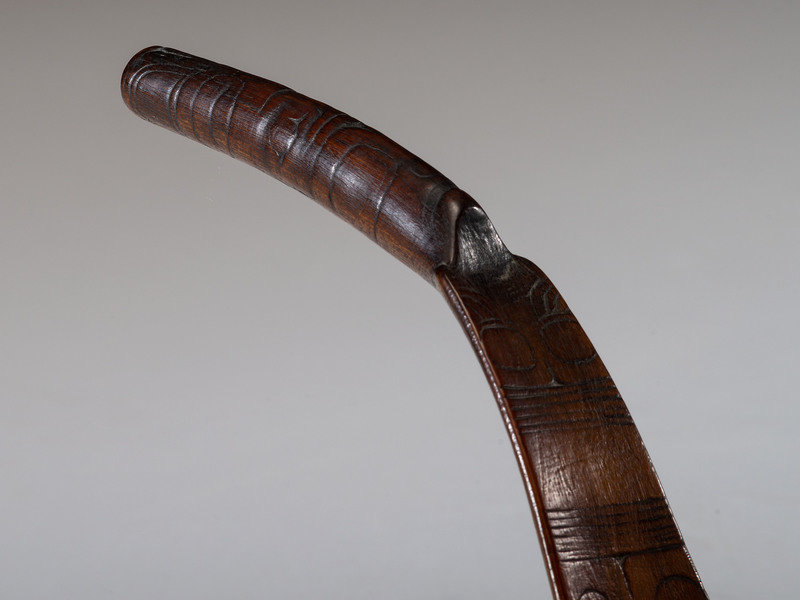 lot of 2, each handle carved with totemic imagery