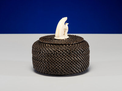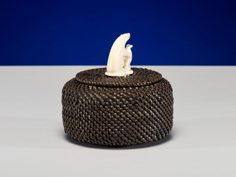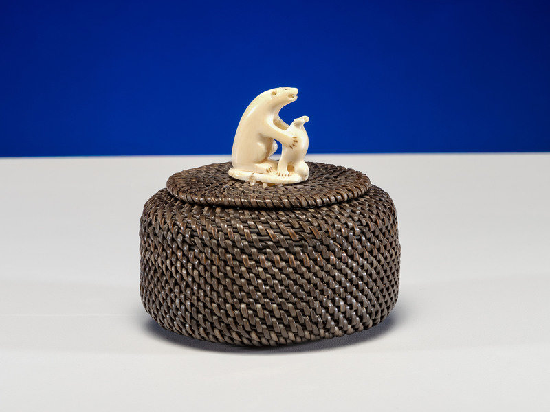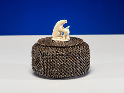 Lidded Baleen Basket, with Carved Bear and Seal Finial