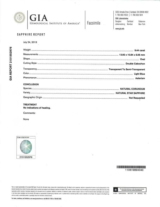 GIA copy, 2013, Report No. 2151552976, Natural Corundum, Natural Star Sapphire, No heat