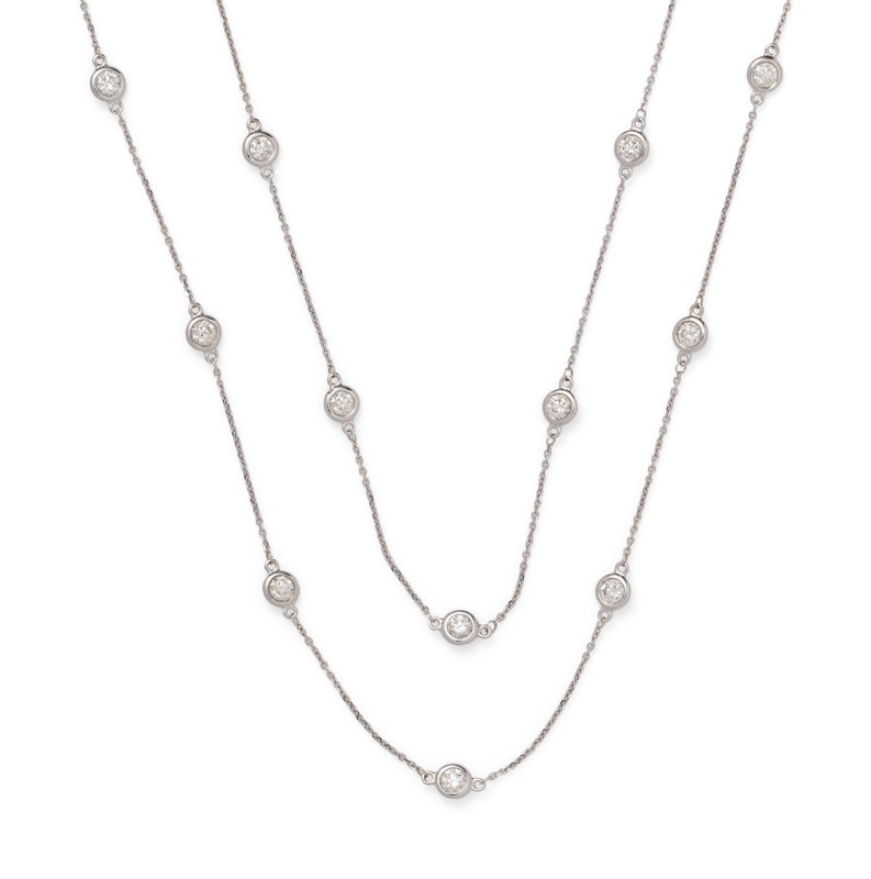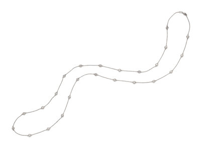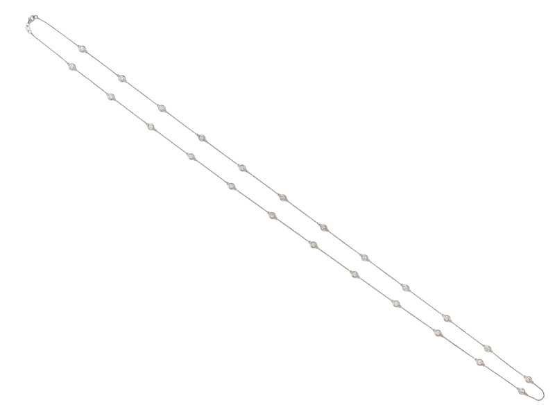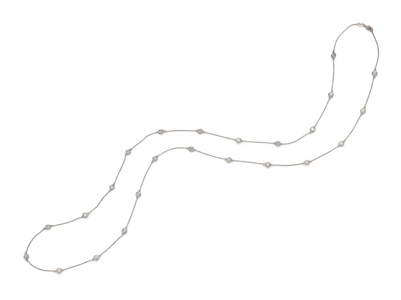 Consisting of a cable link chain interspersed with 24 round brilliant cut diamonds weighing approximately 3.65 carats total. 36 inches long.