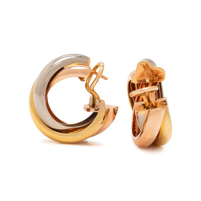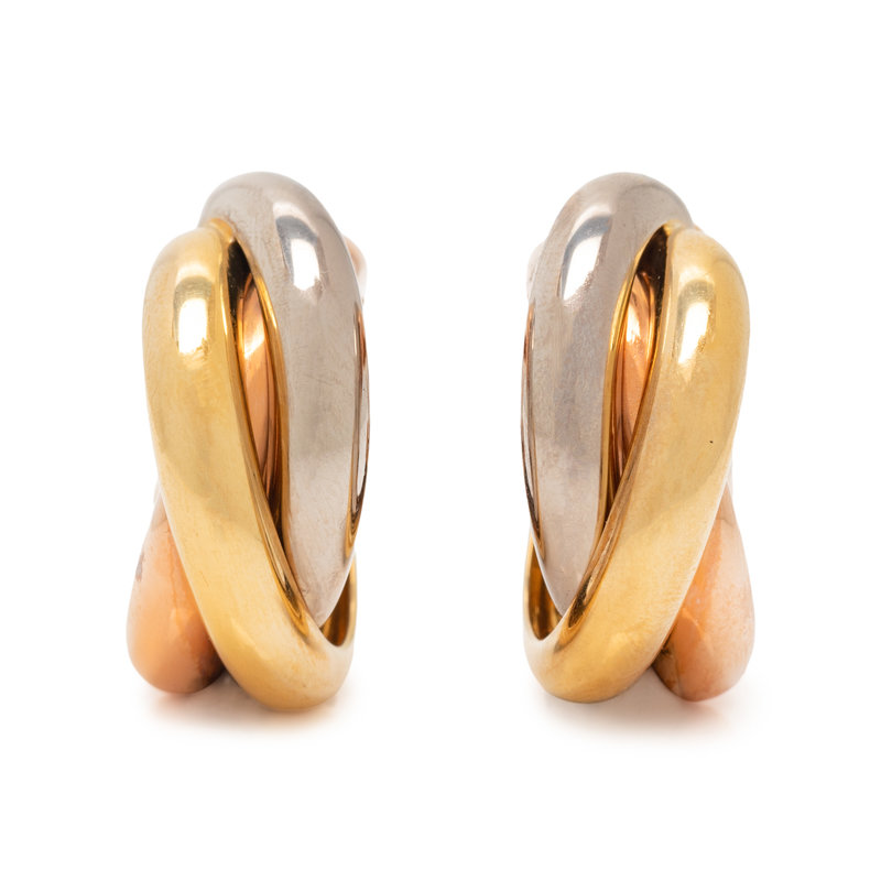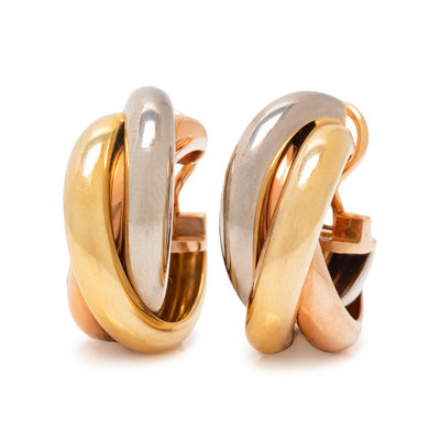 CARTIER, TRICOLOR GOLD 'TRINITY' EARCLIPS