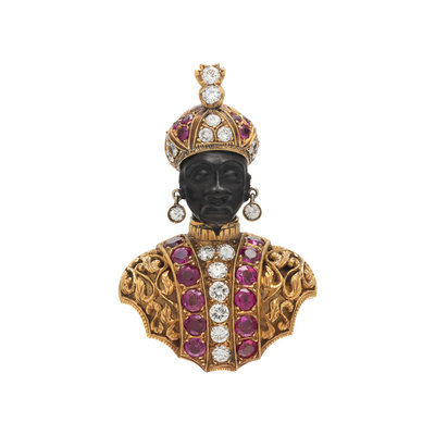 NARDI, YELLOW GOLD, DIAMOND AND RUBY BLACKAMOOR BROOCH