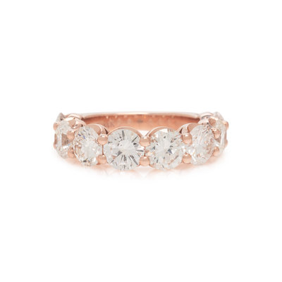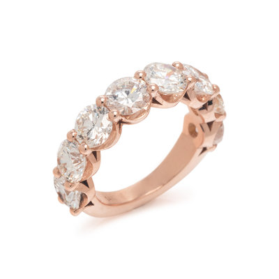 Containing eight round brilliant cut diamonds weighing approximately 3.60 carats total. Mounted in rose gold. Ring size 5.