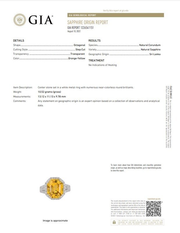 GIA, 2022, Report No. 1226541151, Natural Corundum, Orange-Yellow Sapphire, Sri Lanka, No heat