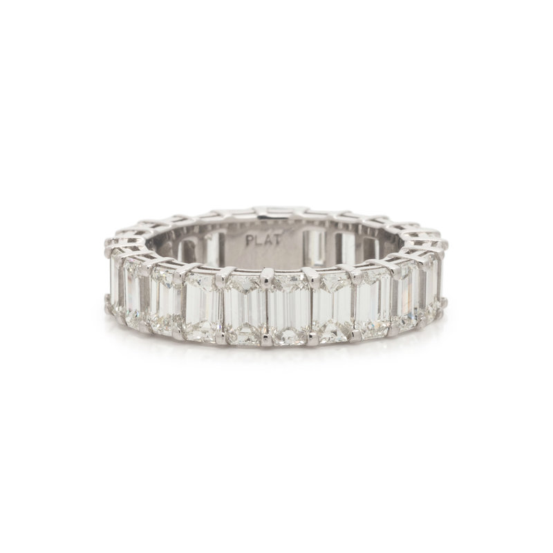 Containing 23 emerald cut diamonds weighing approximately 6.80 carats total. Mounted in platinum. Ring size 7 1/2.