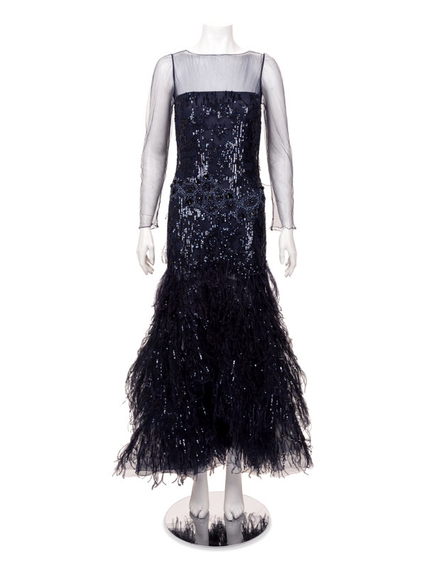 Oscar de la Renta Sequined Dress with Ostrich Feathers, 2000-10s
