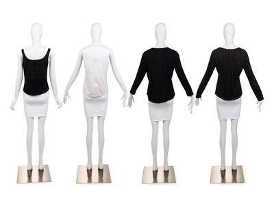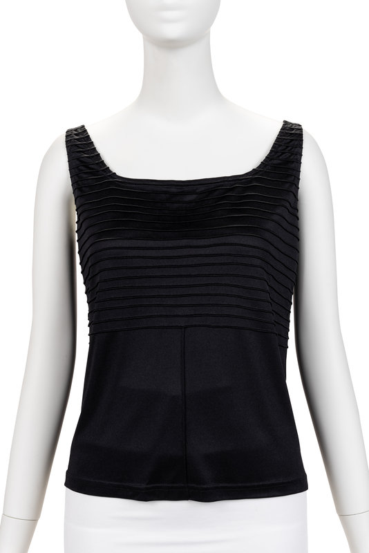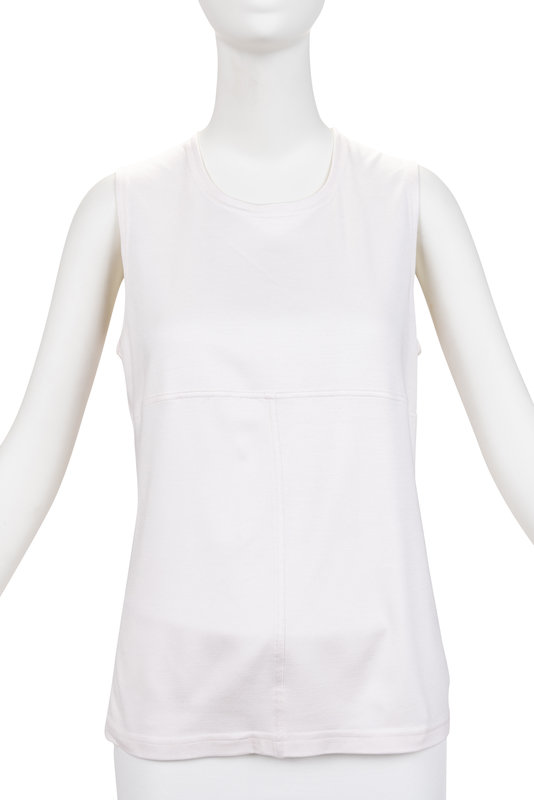 White knit sleeveless top with front panel detailing and center back zipper closure. Item retains retail label.