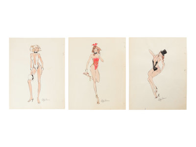 This lot contains three illustrations by Oleg Cassini for Playboy.