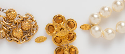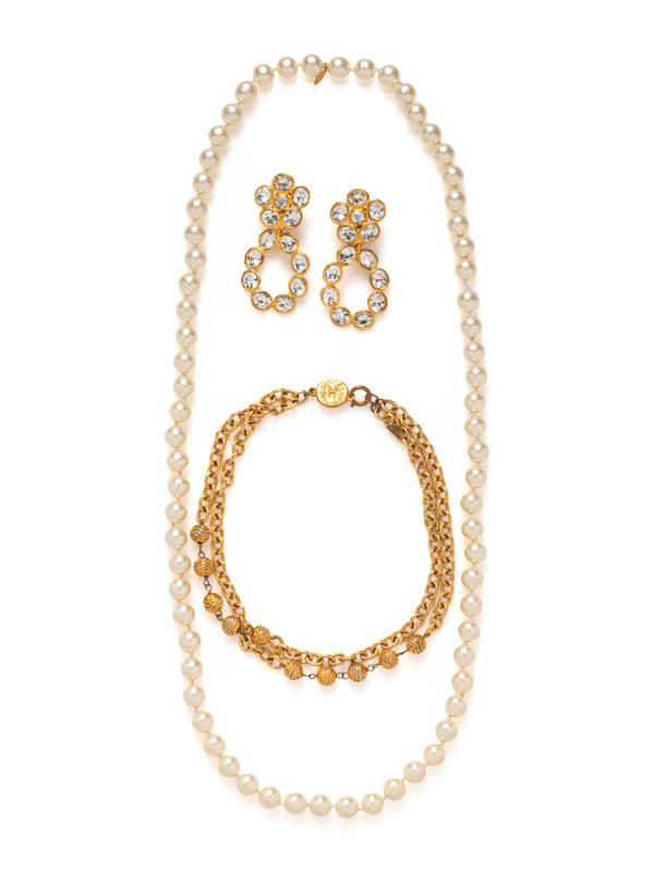 Chanel Costume Jewelry: Two Necklaces and Pair of Earrings, 1980-90s