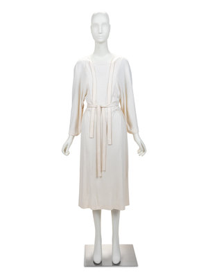 In the 1930s, Madame Grès (1903-93) became known for her exquisitely draped, bias-skimming gowns. The successful label adapted, over decades, to changing styles and eventually producing modern cuts for women in the 1970s and 80s. These simple day dresses feature refined cuts and quiet elegance in ultimate simplicity.