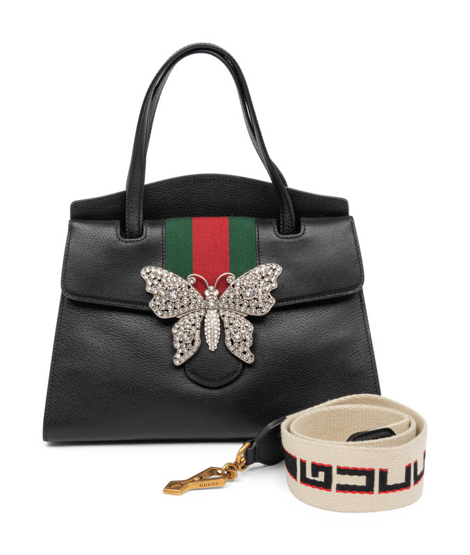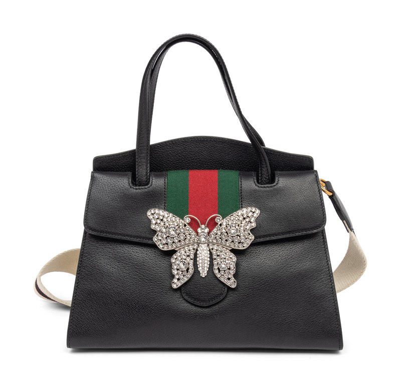 Gucci Black Leather Sylvie Butterfly Bag, Cruise 2018