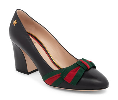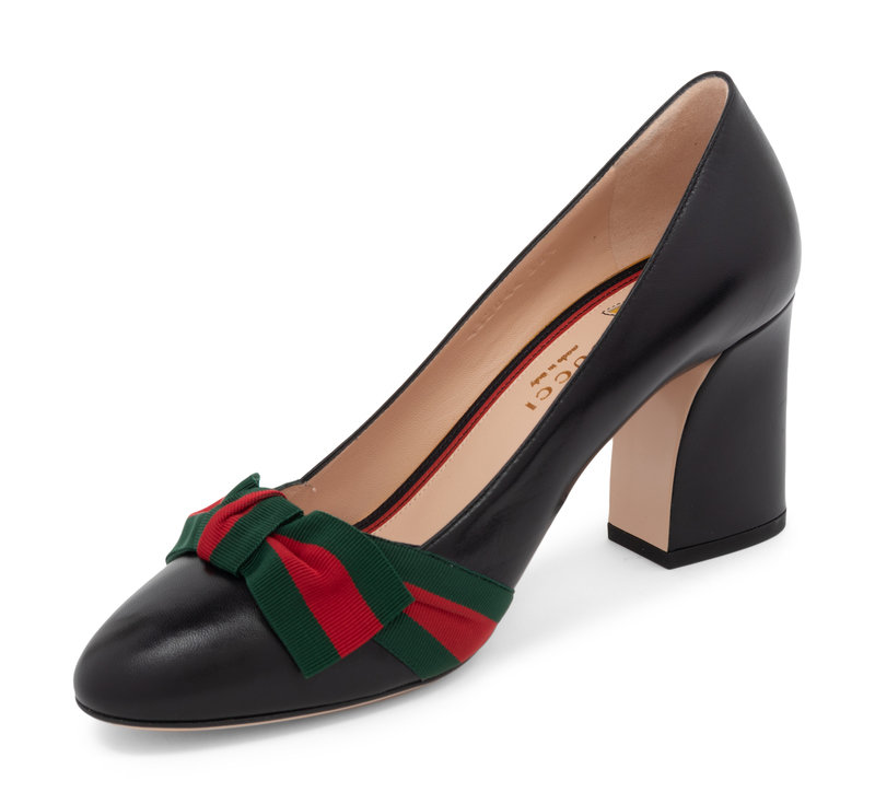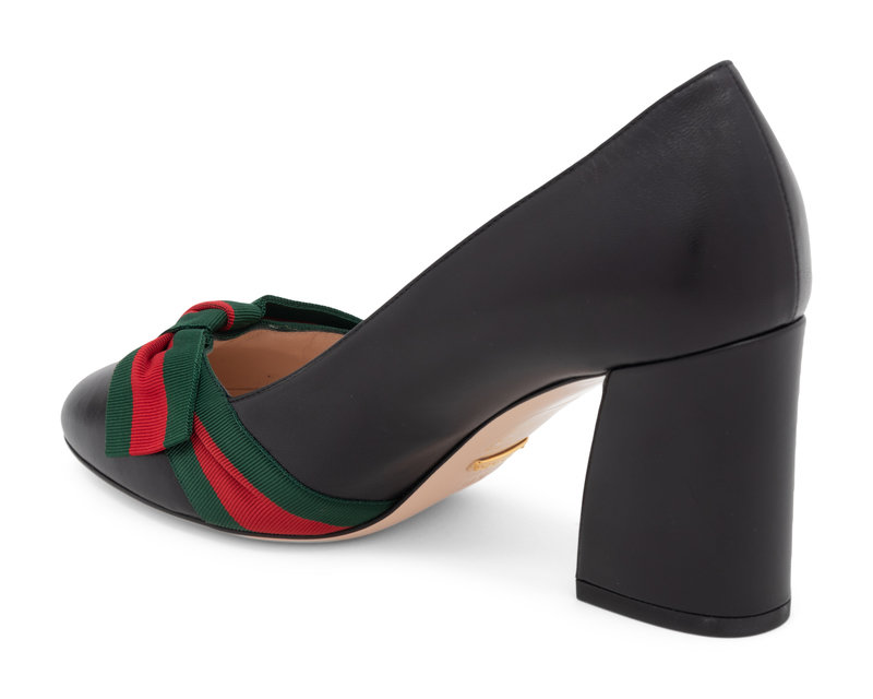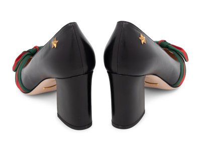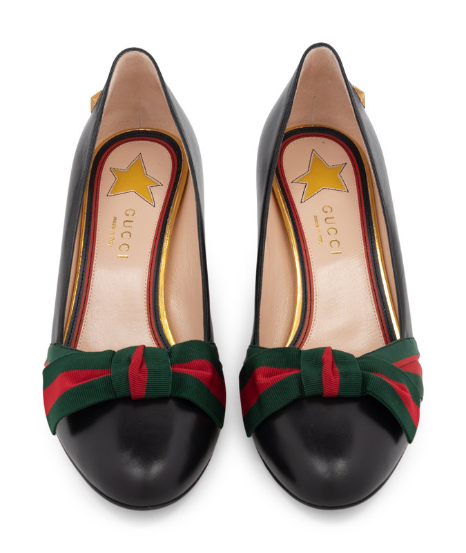Gucci Black Leather Sylvie Bow Shoes, Unworn