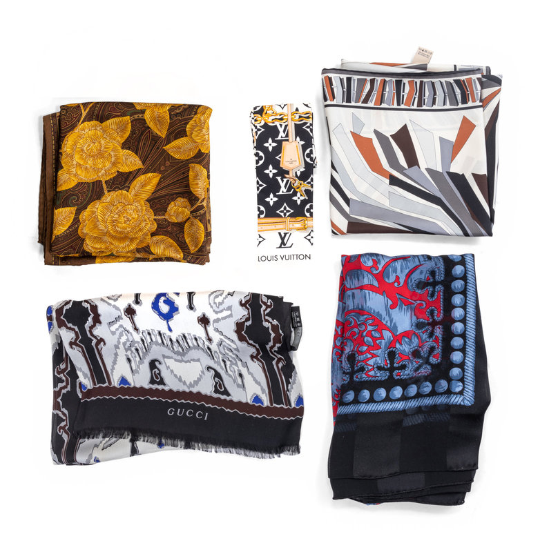 Five Designer Scarves: Louis Vuitton, Givenchy, Gucci, Chanel, Emilio Pucci