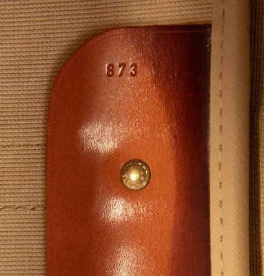 Dual brown monogrammed coated canvas soft sided suitcase with two brown leather rolled top handles, one main interior compartment with a large snap pocket and straps, and a full zipper closure.