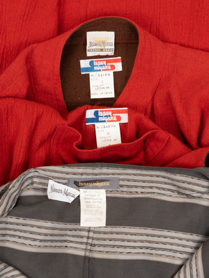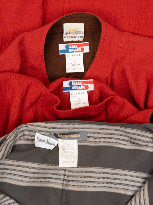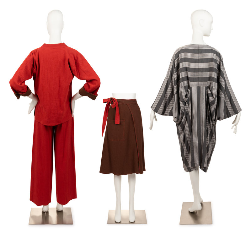 This lot includes early pieces that embody Issey Miyake's philosophy: androgyny in the form of wide-fitting jumpsuits, technological innovation in multidirectional micro pleats, and the primordial simplicity of clothing made from a single piece of cloth. Delicate but never fussy, constructed but not constricting, these early garments establish a precedent for an expanded vocabulary of fashion in Miyake’s own visual language.