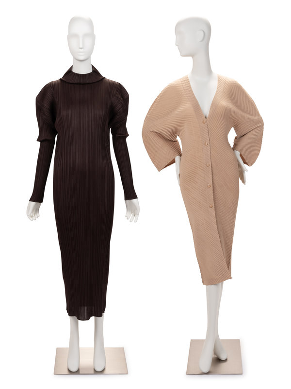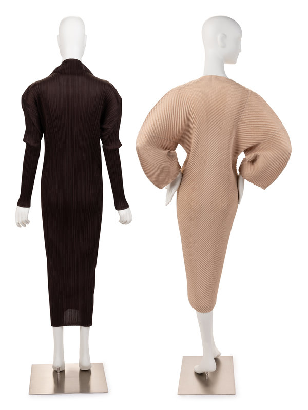 This auction includes early pieces that embody Issey Miyake's philosophy: androgyny in the form of wide-fitting jumpsuits, technological innovation in multidirectional micro pleats, and the primordial simplicity of clothing made from a single piece of cloth. Delicate but never fussy, constructed but not constricting, these early garments establish a precedent for an expanded vocabulary of fashion in Miyake’s own visual language.