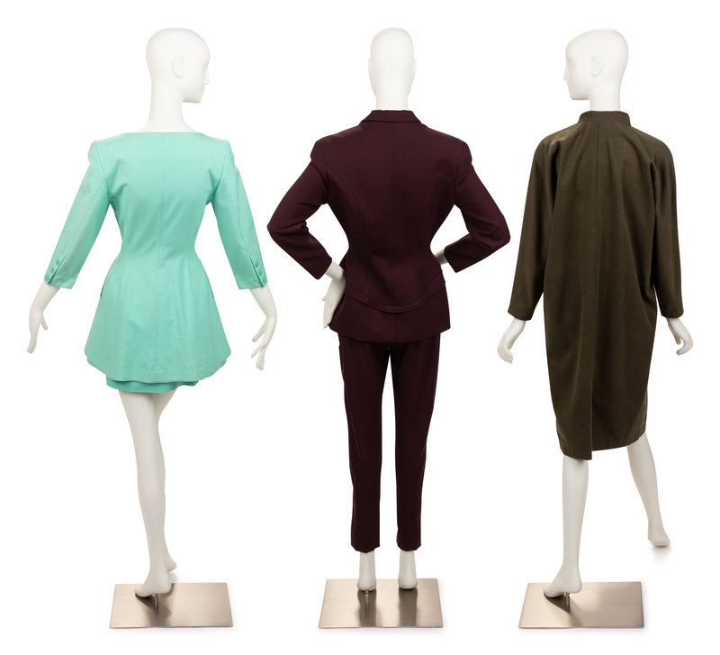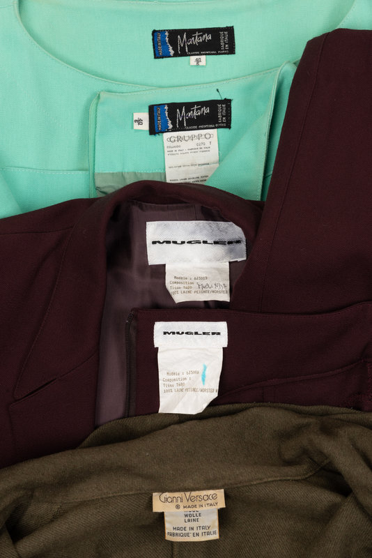 Three Designer Items: One Gianni Versace Dress, One Thierry Mugler Pant Suit, One Claude Montana Skirt Suit, 1980-90s