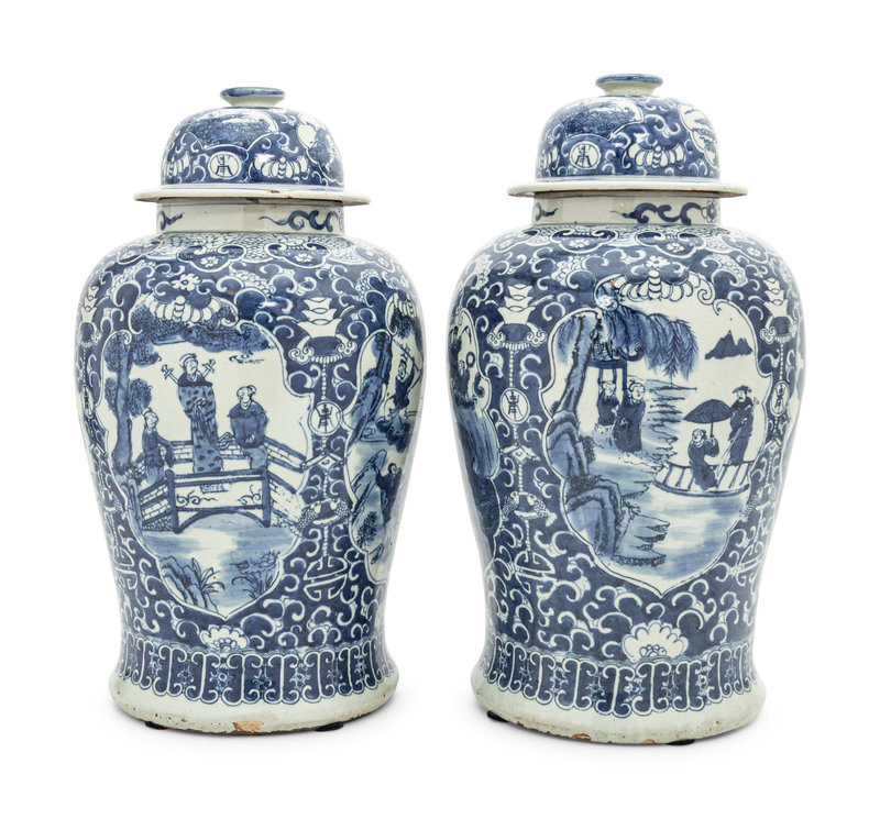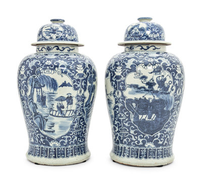 A Pair of Blue and White Porcelain Jars and Covers