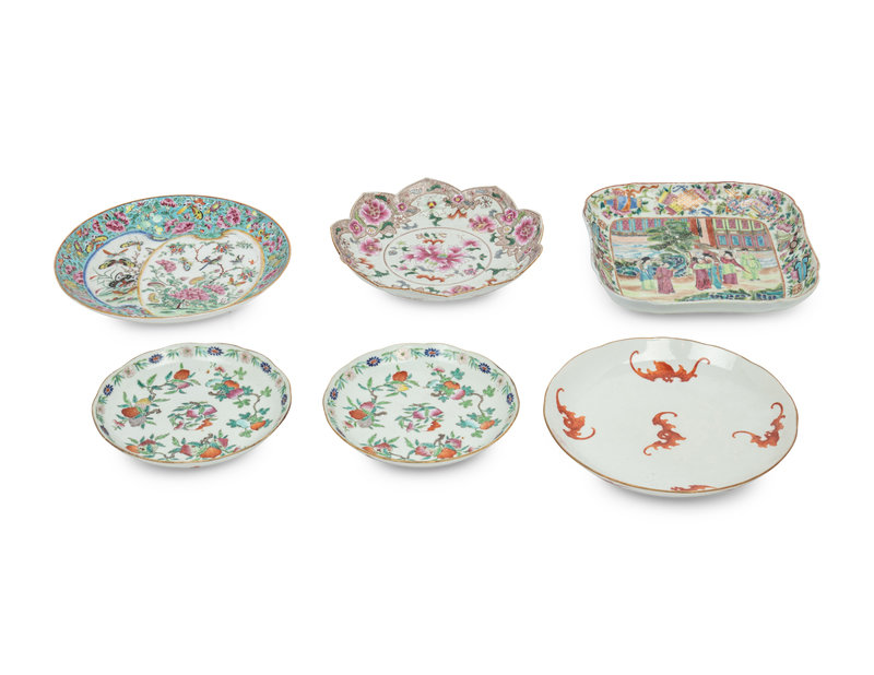 Six Famille Rose Porcelain Plates