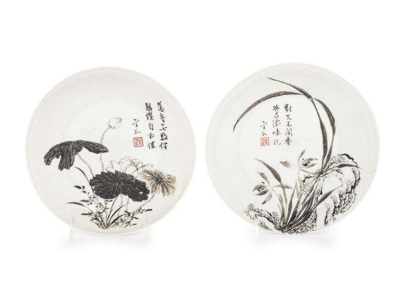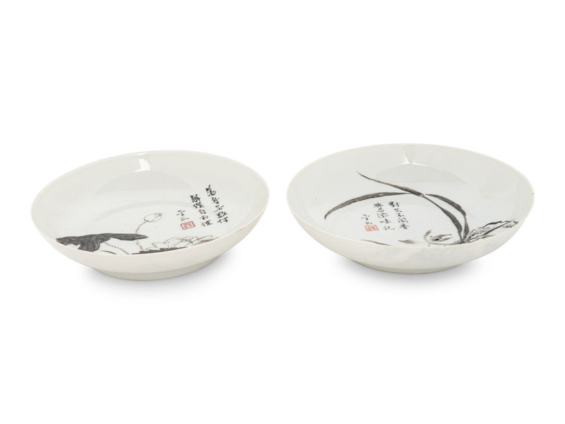 A Pair of Grisaille Enameled Porcelain Dishes