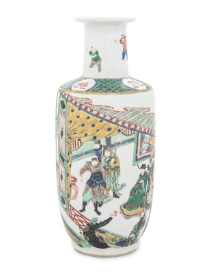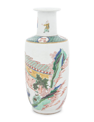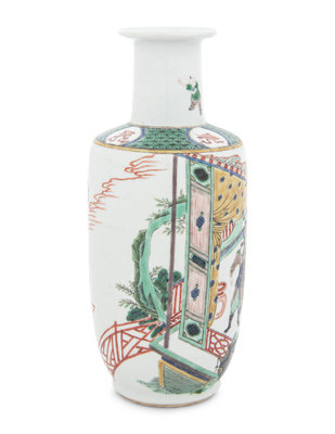 A Famille Verte Porcelain Rouleau Vase