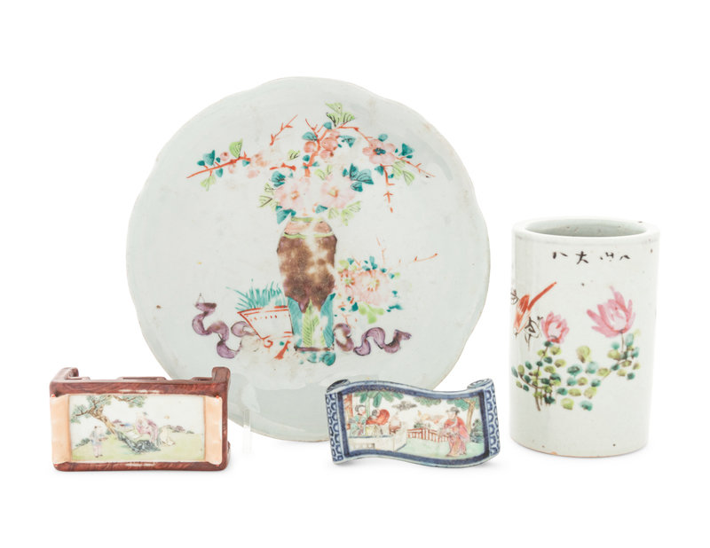 Four Famille Rose Porcelain Scholar’s Objects