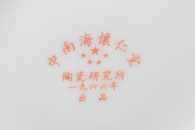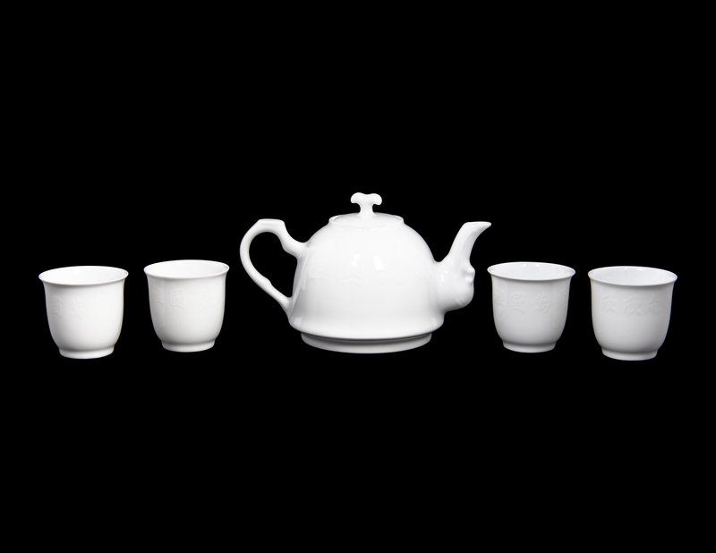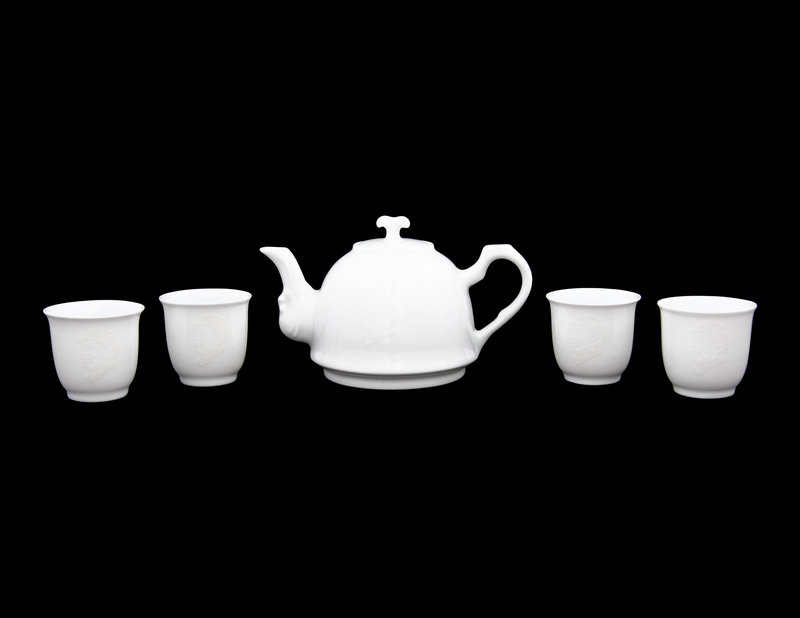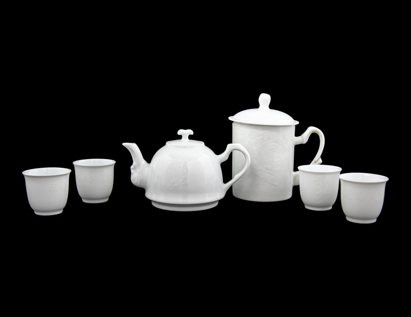 1966年陶瓷研究所出品 中南海懷仁堂 暗花毛澤東頭像白瓷茶具一套