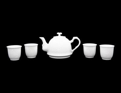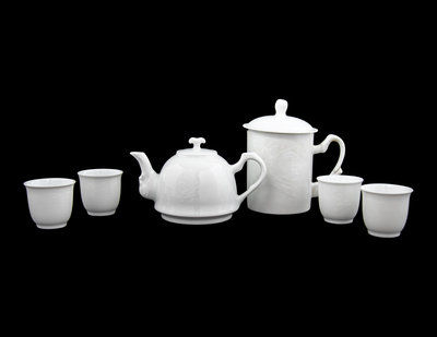 A Set of White Glazed Porcelain Teapot and Tea Cups and A Covered Mug