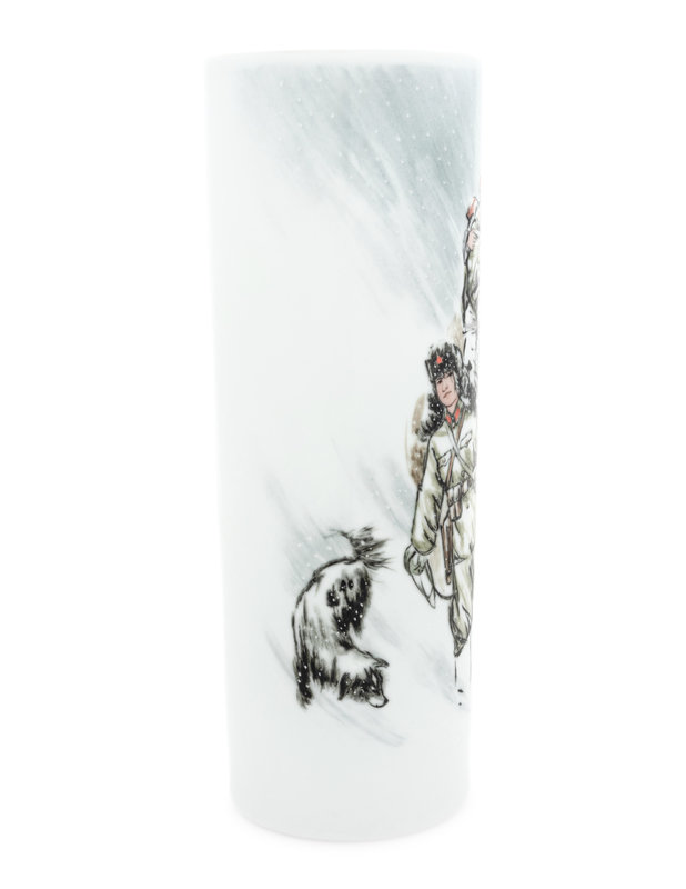A Polychrome Enameled Porcelain Cylindrical Vase