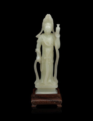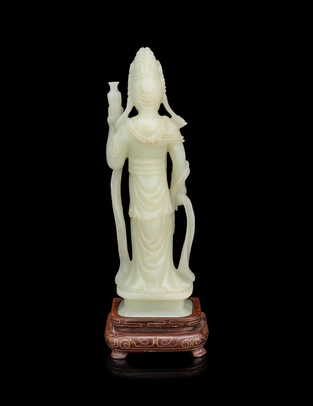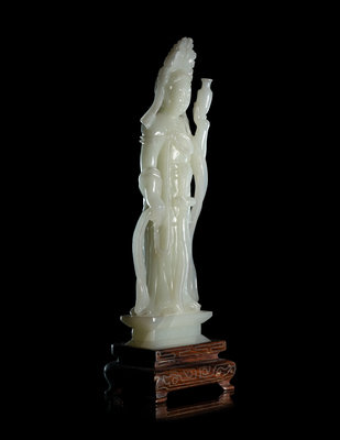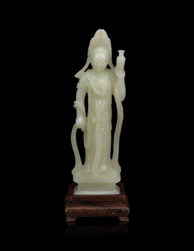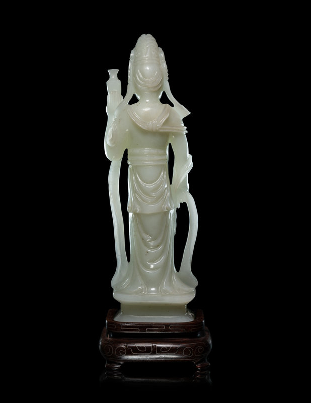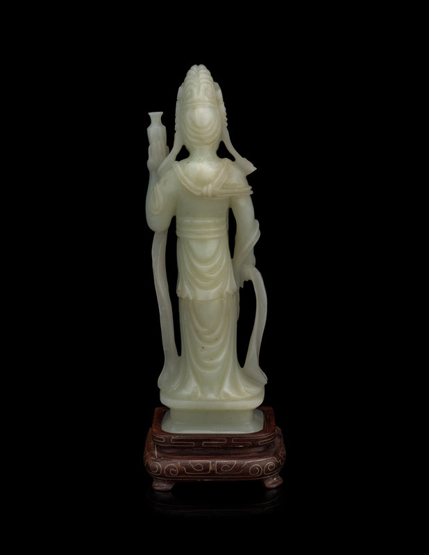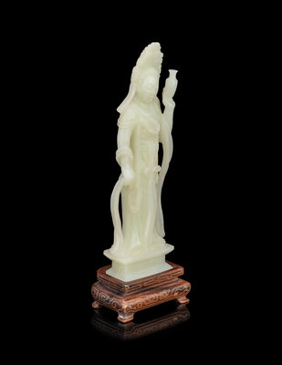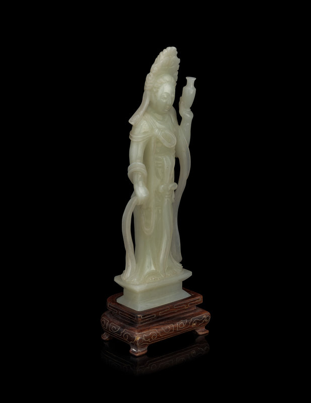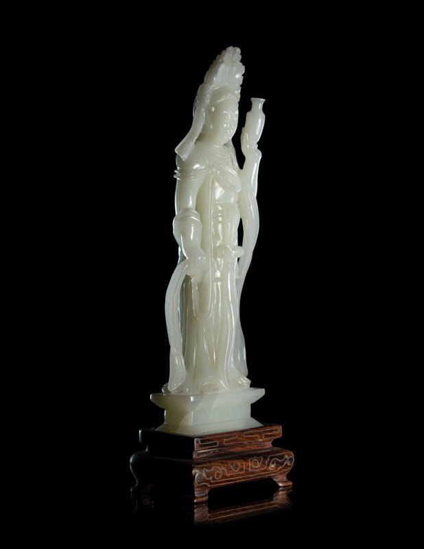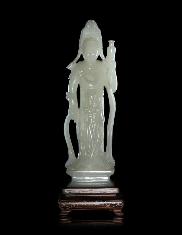 A Pale Celadon Jade Figure of Standing Guanyin