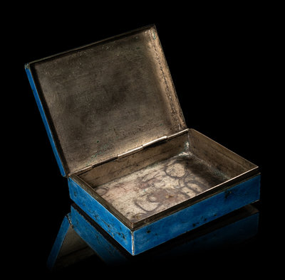 燒藍嵌青白玉童子持蓮蓋盒