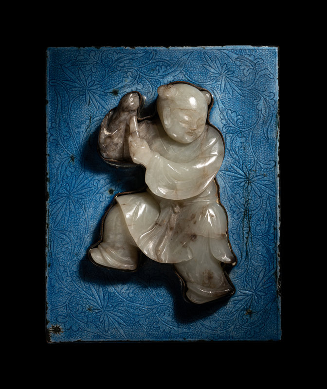 A Pale Celadon Jade Carving of a Boy