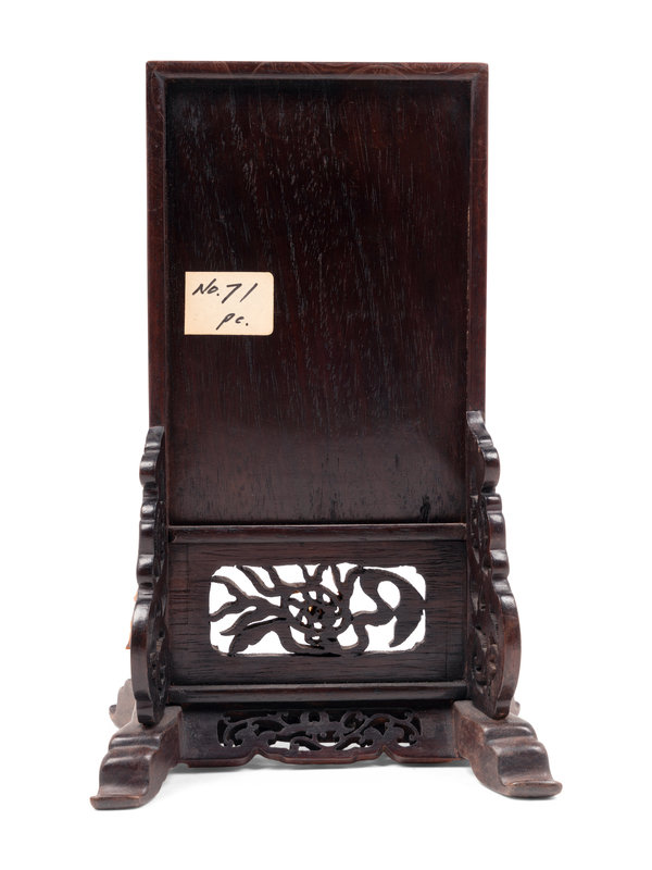 晚清-民國 紅木鑲白玉刻花牌硯屏